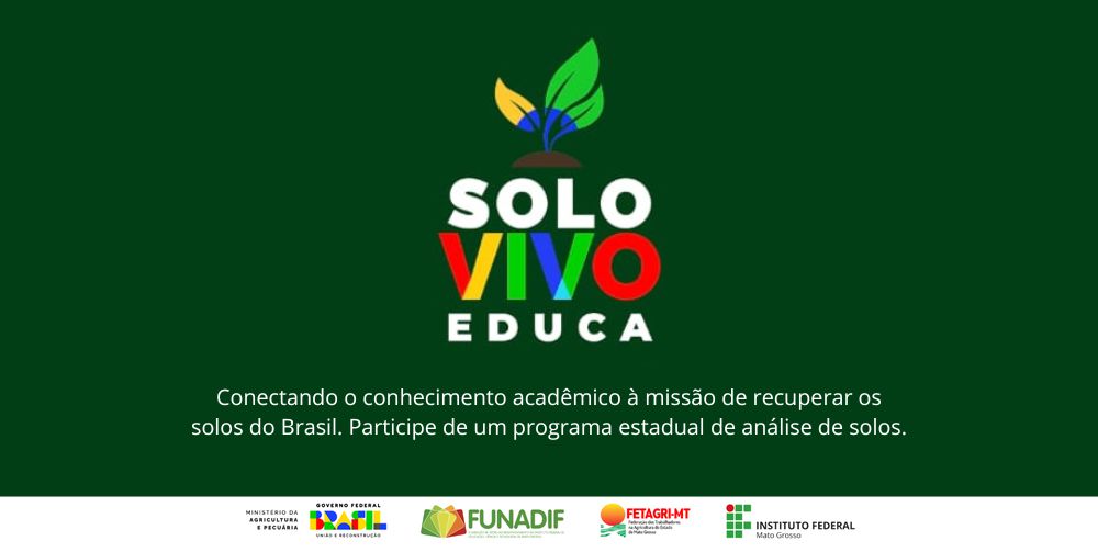 O Instituto Federal de Mato Grosso (IFMT), em parceria com o Ministério da Agricultura e Pecuária (MAPA), lançou o projeto Solo Vivo Educa. A iniciativa é voltada para estudantes do IFMT que são filhos de pequenos e médios produtores rurais beneficiados pelo programa Solo Vivo.